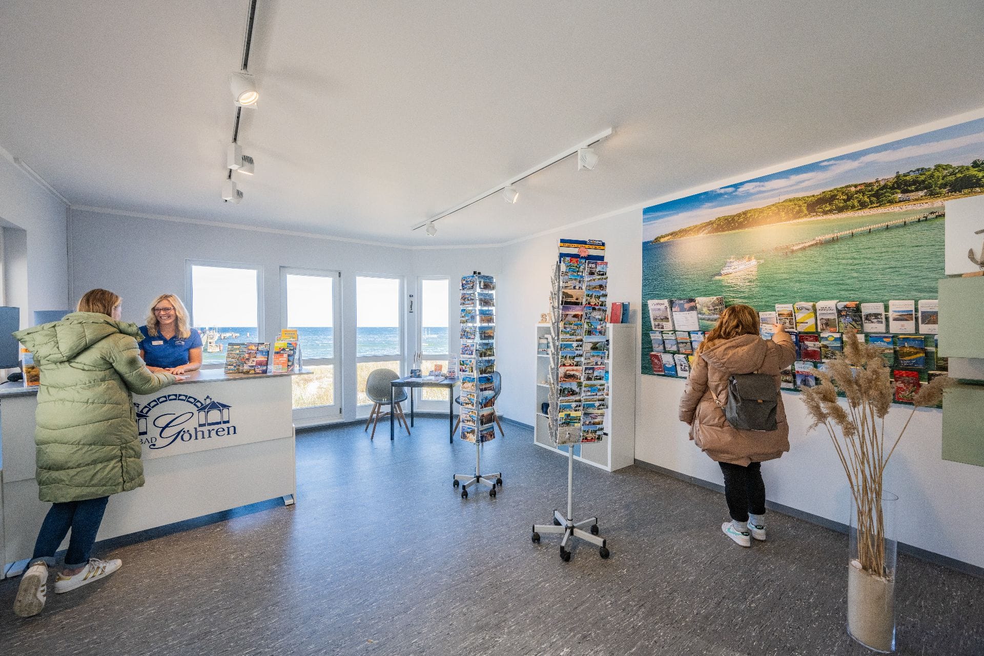 Das Brückenhaus, welches gleichzeitig den Eingang zur Seebrücke bildet, wird von der Kurverwaltung als Außenstelle der Tourist-Information (Infostelle) genutzt. Dort haben Sie die Möglichkeit, Schiffsfahrkarten, Souvenirs, Rad- und Wanderkarten sowie Postkarten zu kaufen. Außerdem erhalten Sie Informationen zum Ostseebad Göhren, der Halbinsel Mönchgut und der Insel Rügen. Direkt am Seebrückenhaus befindet sich ein Briefkasten für Ihre Urlaubspost.